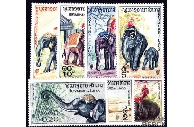 Laos - n° 44/50 - Les Eléphants. Dessin et gravure Chamnane Prisayane et Pheulpin.