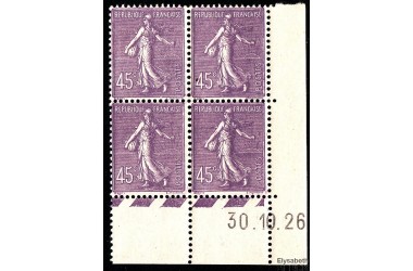 France - n° 197 - Semeuse - 45c violet.- Coin daté du 30.10.26 - Luxe.