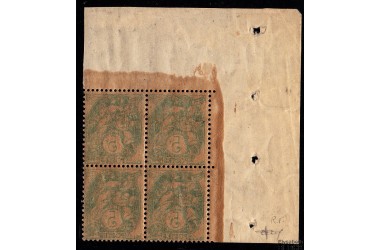 France - n° 111i - 5c Type Blanc - Bloc de 4 Recto-Verso. Coin de Feuille. Superbe.